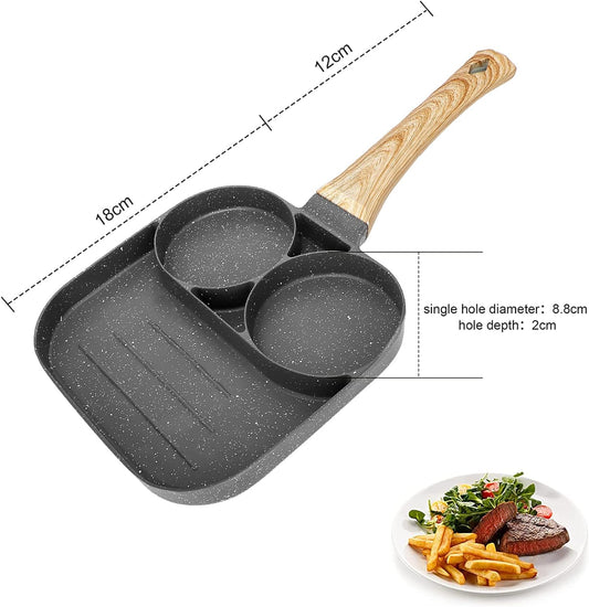Sartén Antiadherente Multiusos 3 Puestos Plancha para Asar
