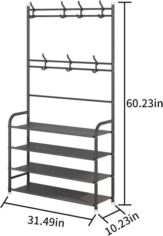Zapatero Perchero Organizador Armario 4 Niveles Multifunción Color Negro