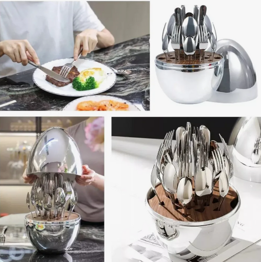 Cubiertos x24 Piezas Forma Huevo Plateado