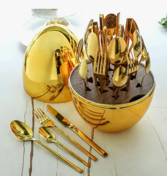 Cubiertos x24 Piezas Forma Huevo Dorado