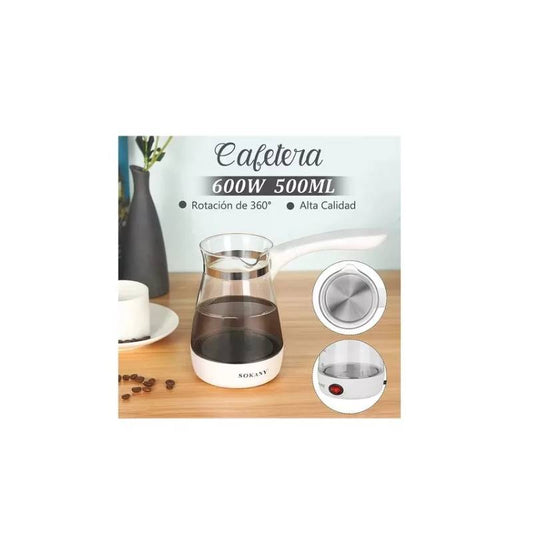 Cafetera y Tetera Eléctrica en Vidrio 500ml \ 600w Sokany